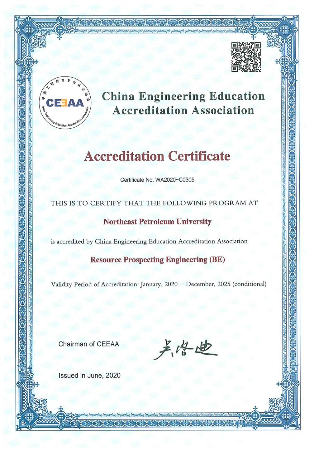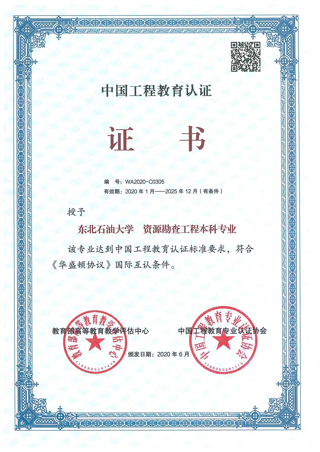 资源勘查工程获得中国工程教育认证证书