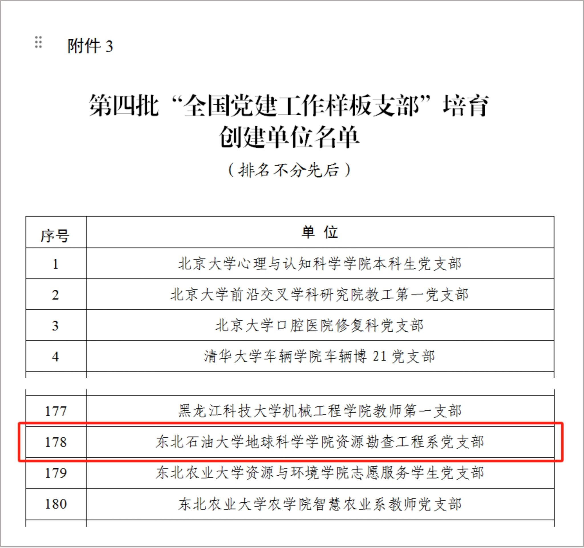 万象城awcsport官网资源勘查工程系党支部入选第四批教育部全国党建工作“样板支部”培育创建单位