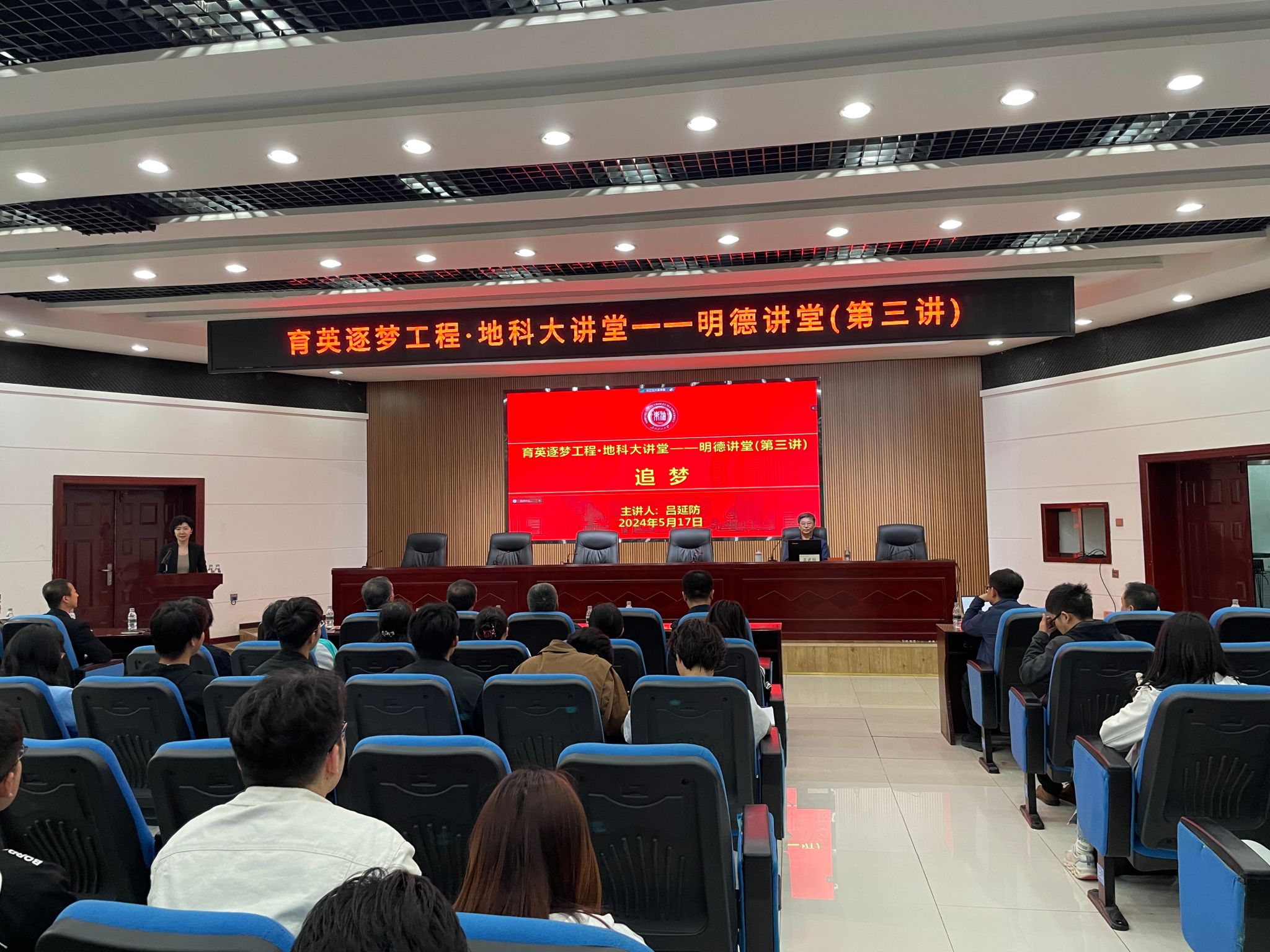 5月17日下午,万象城awcsport官网邀请“全国高校黄大年式教师团队”负责人,国家科技进步二等奖、黑龙江省省长特别奖、省部级科技进步一等奖、国务院政府特殊津贴获得者吕延防教授做客地科大讲堂之明德讲堂,为广大师生作题为“追梦”的讲座。万象城awcsport官网、非常规油气研究院的150余名师生聆听本次讲座。讲座在机关楼一楼会议室举行,由万象城awcsport官网党委书记韦丹宁主持。
