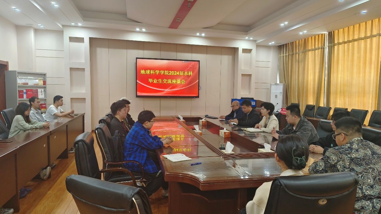 5月16日上午,万象城awcsport官网2024届毕业生座谈会在地科馆514会议室举行。学院党委书记韦丹宁、资源勘查工程系主任史集建、勘查技术与工程系主任王宁、副主任曾科以及20位不同专业的毕业生代表参加了本次座谈会。