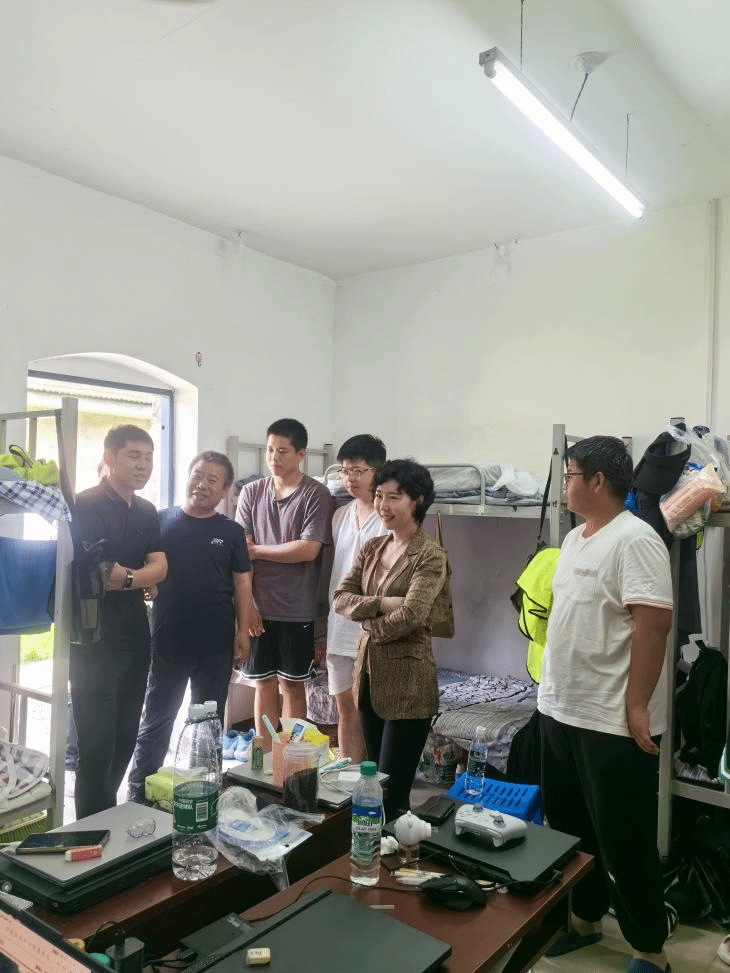 韦丹宁和王海学深入实习基地和学生寝室与实习学生谈心交流,了解他们的学习和生活情况,并勉励大家要珍惜实习机会,认真完成实习教学安排,打牢野外地质工作基础,要勇于实践,敢于创新,在实践中增长才干,锤炼意志。