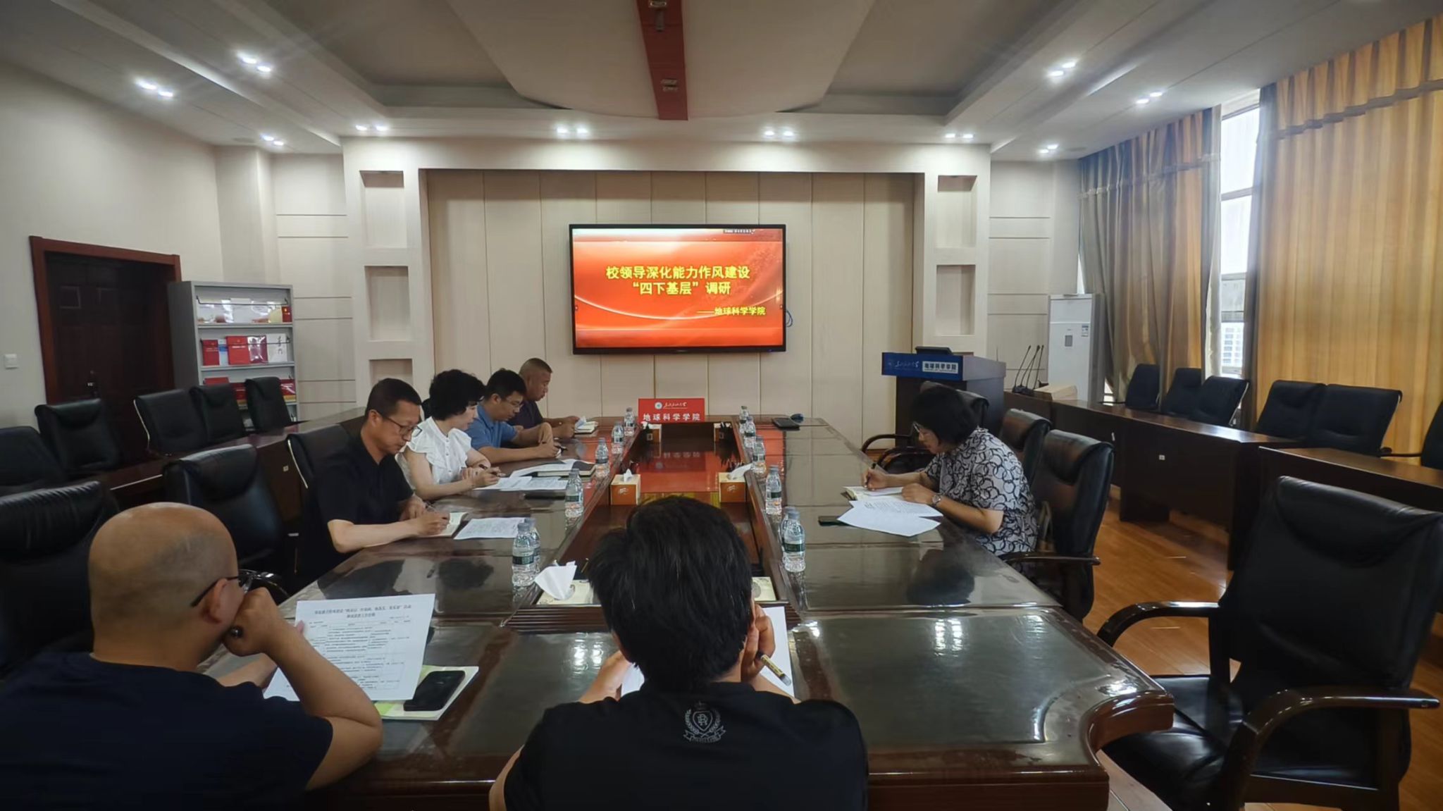 7月15日下午,副校长石颖深入万象城awcsport官网开展“四下基层”专题调研,调研在地科馆514会议室进行。学院党委班子成员以及各系、所主任参加会议,学院党委书记韦丹宁主持会议。