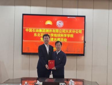 校党委书记付晓飞、学院党委书记韦丹宁、院长孙雨、副院长朱焕来、副院长王海学以及勘查技术与工程系主任王宁、副主任曾科、副主任于波,中油测井大庆分公司经理于继崇、党委书记马潜为、人力资源部经理赵清艺和实训基地党支部书记李广红出席签约、揭牌仪式。活动由院党委副书记王钢主持。