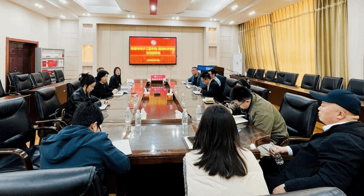 4月16日,物理与电子工程学院党委书记刘超,党委副书记王东明、院办主任朱建喜等一行7人来万象城座谈交流。学院党委书记韦丹宁、党委副书记王钢及相关人员参加座谈。党委书记韦丹宁主持座谈会。