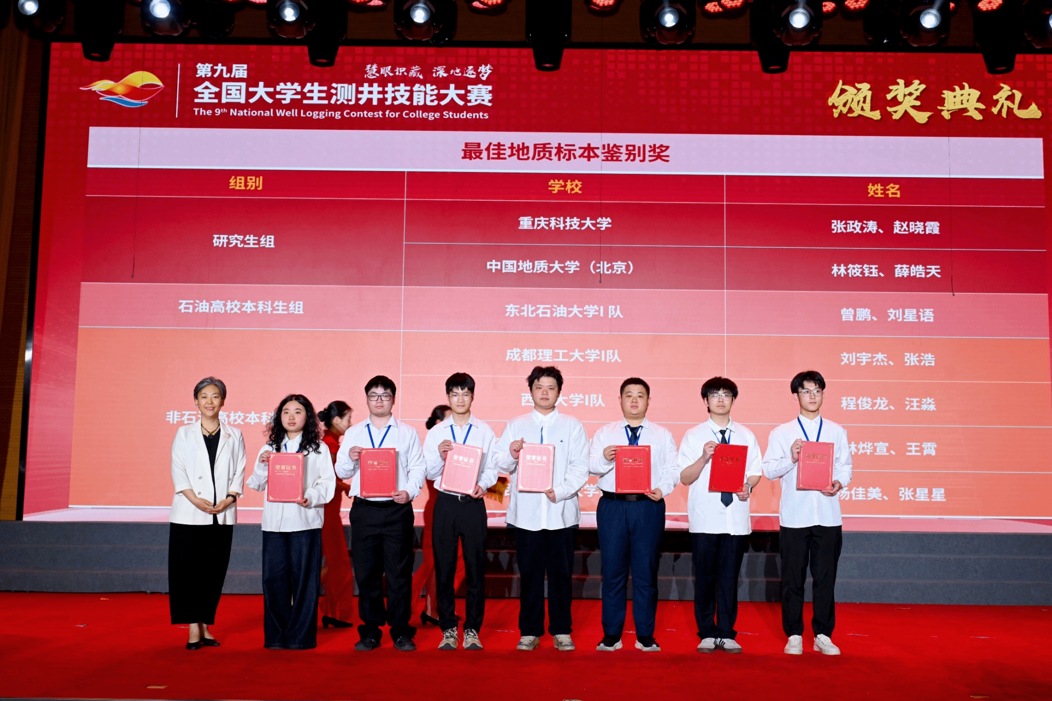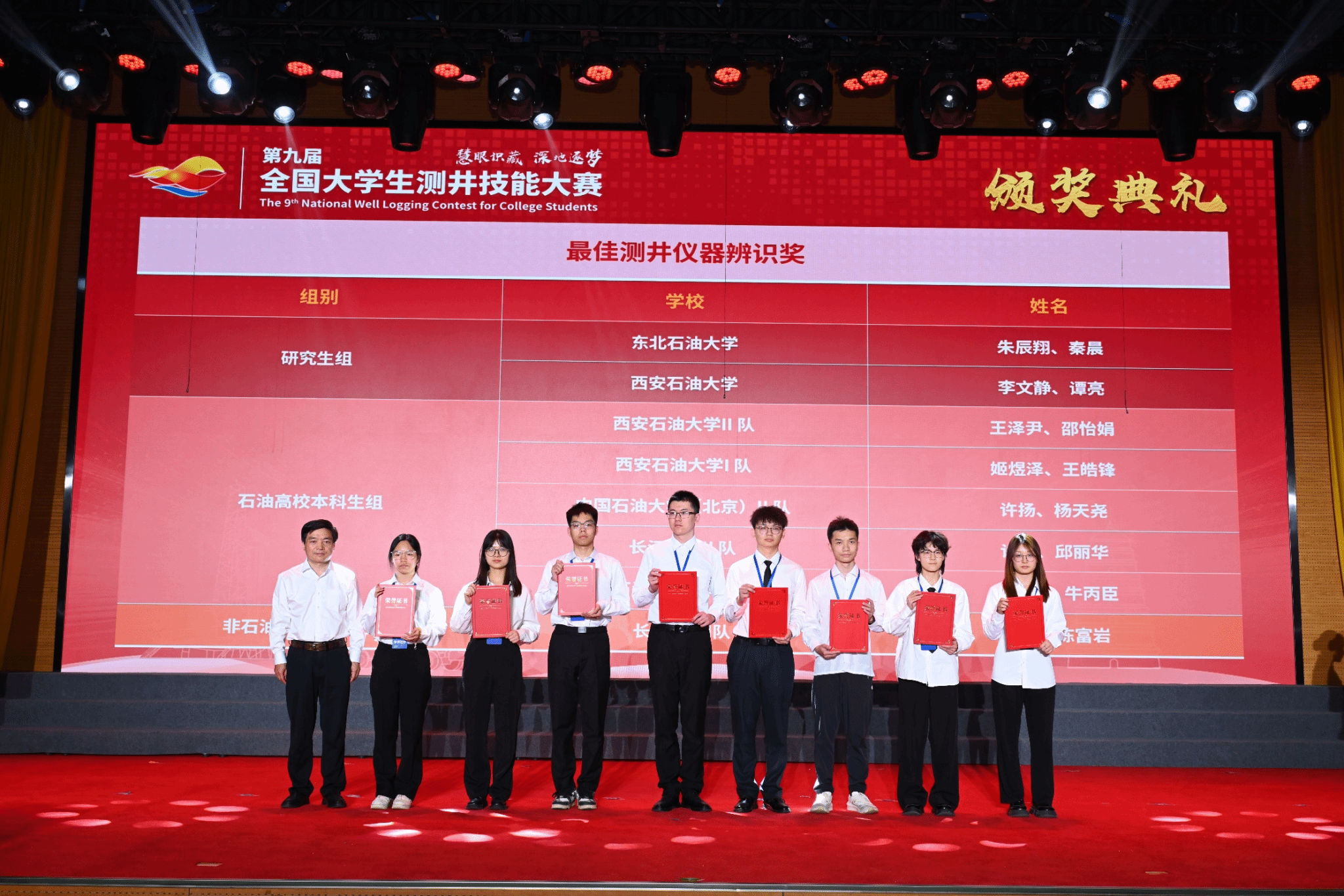 大赛由中国石油学会测井专业委员会、中石协测井设备与工具分会主办,中国石油集团测井有限公司承办,西安石油大学、陕西省石油学会协办,包括技能操作、测井仪器辨识、地质标本鉴别、知识竞赛、汇报答辩等环节,历时4天,吸引了全国石油、地质、煤炭、化工、地矿行业的17所高校43支代表队参赛。我校代表队分别获团队一等、二等、三等奖各1项,单项奖5项。其中研究生队伍获研究生赛道最佳地质设计报告、最佳答辩、最佳仪器辨识、最佳知识竞赛奖,并以总分第二名的成绩获研究生赛道一等奖,本科生队伍获得石油高校本科生组唯一最佳地质标本鉴别奖,展现了我院学子在测井资料综合应用、报告撰写、理论知识、团队协作等方面的能力。