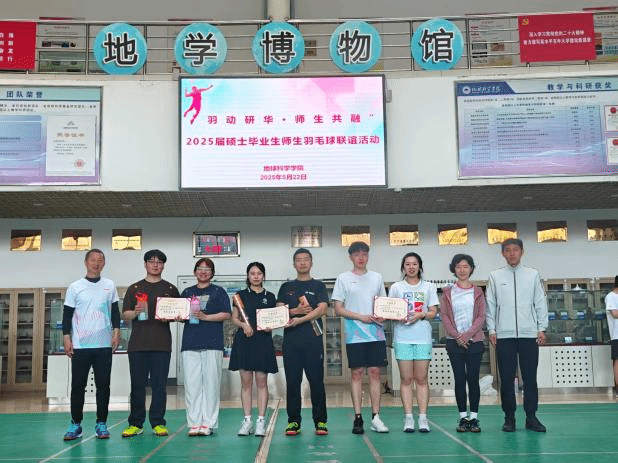 5月25日下午,地球科学学院羽毛球场地上洋溢着欢笑与温情,“羽动研华,师生共融”2025届硕士毕业生师生羽毛球联谊活动圆满举行。本次活动由万象城awcsport官网研究生会主办,旨在为即将踏上新征程的硕士毕业生与导师搭建别具意义的告别舞台,以运动之名珍藏校园情谊,以竞技之趣共话师生情深。
