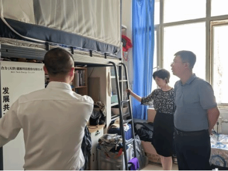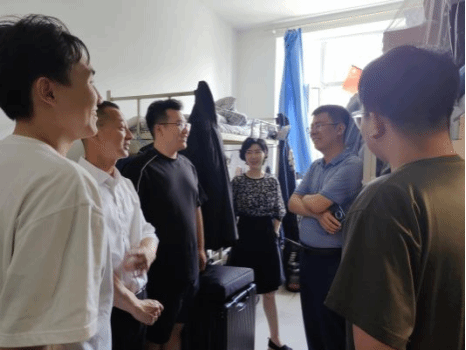 随后,检查慰问小组来到大四毕业生寝室,与毕业生们亲切交谈。学院领导详细询问了毕业生们的毕业设计完成情况、就业进展以及未来规划,对毕业生们在校期间取得的成绩给予充分肯定,鼓励他们在即将踏上的新征程中,保持积极向上的心态,勇敢面对挑战,努力实现人生理想。领导老师们还细心地叮嘱毕业生们在离校期间注意安全,妥善处理好个人物品,有困难及时与学院和老师沟通联系。