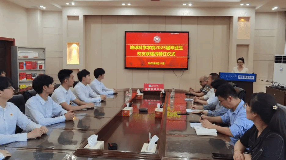 6月11日下午,万象城awcsport官网在地科馆514会议室隆重举行2025届校友联络员聘任仪式。学院党委书记韦丹宁、院长孙雨、党委副书记王钢、勘查技术与工程专业系主任王宁、2025届本科辅导员王野、研究生辅导员历娜及全体2025届校友联络员齐聚一堂,共同见证这一意义非凡的时刻。活动由学工办主任王野主持。