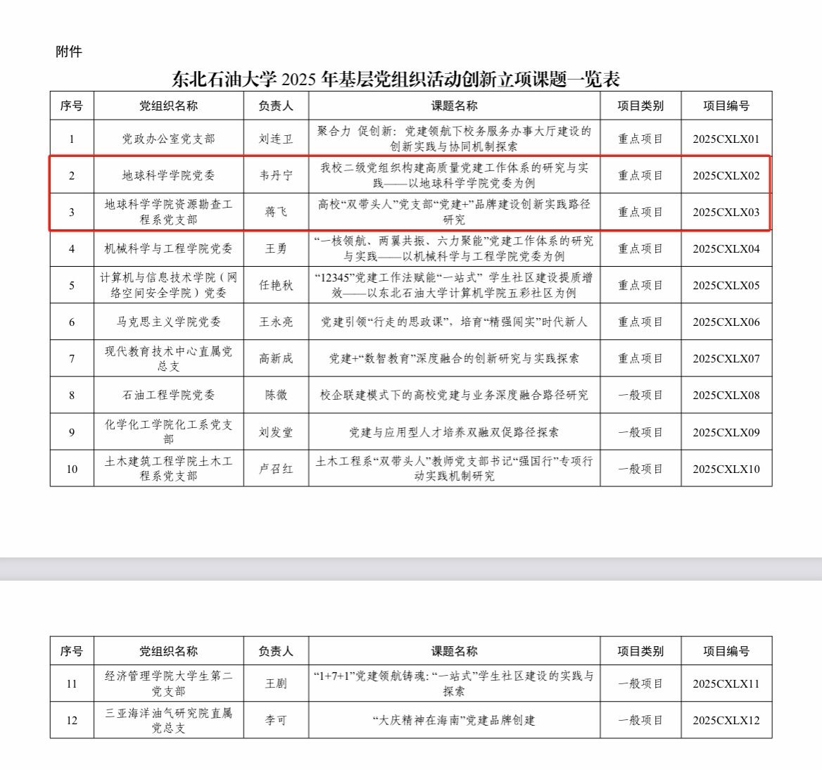 近日,我校公布了2025年基层党组织活动创新立项评审结果,万象城党委申报的《我校二级党组织构建高质量党建工作体系的研究与实践——以万象城awcsport官网党委为例》、资源勘查工程系党支部和勘查技术与工程系党支部联合申报的《高校“双带头人”党支部“党建+”品牌建设创新实践路径研究》成功获批重点项目。