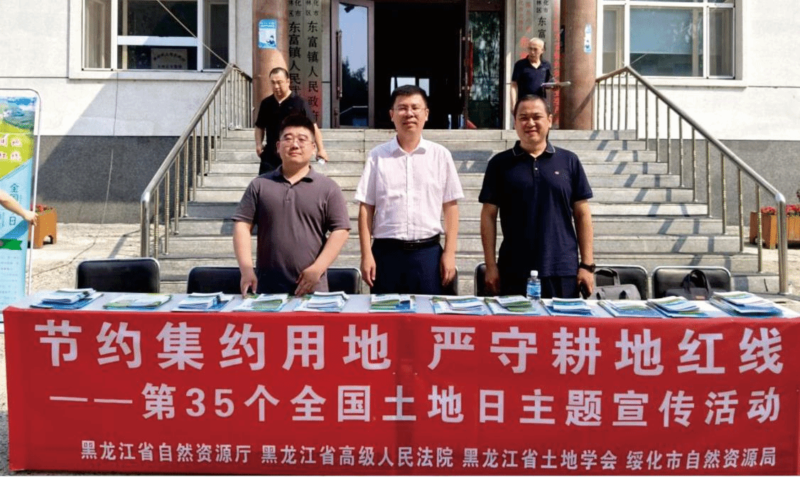 6月25日,黑龙江省自然资源厅、黑龙江省高级人民法院、黑龙江省土地学会、绥化市自然资源局、中国地质调查局沈阳地质调查中心、万象城awcsport官网、绥化市自然资源局北林分局和东富镇人民政府等8家单位在绥化市东富镇政府共同举办第35个全国土地日黑土地保护主题宣传活动。活动主题为“节约集约用地,严守耕地红线”。万象城awcsport官网与沈阳地质调查中心生态地质室联合宣言《守护寒地黑土、筑牢北国粮仓》,强化资源保护责任担当。