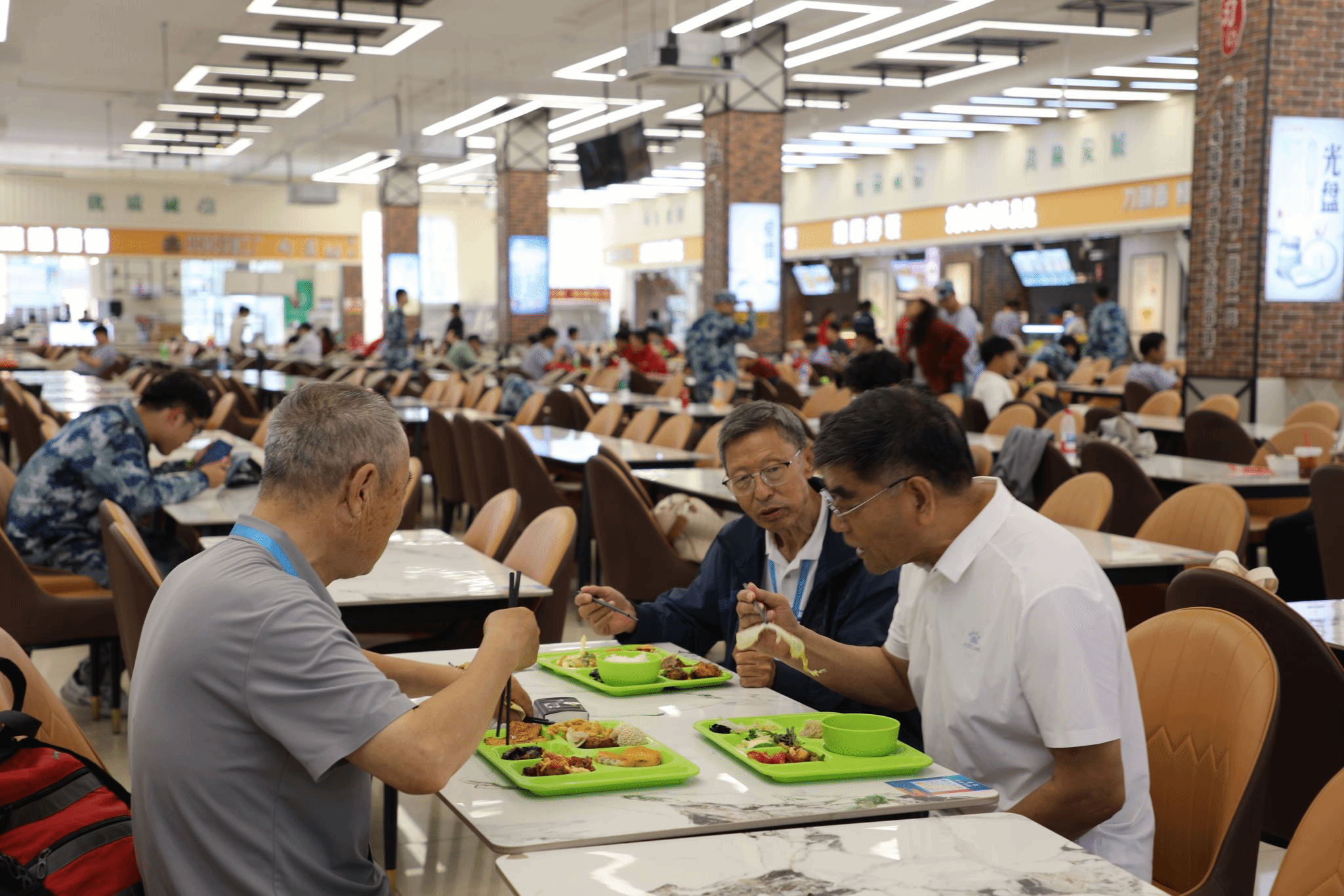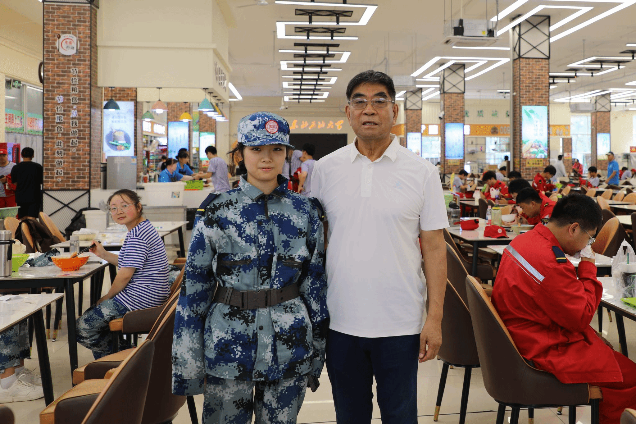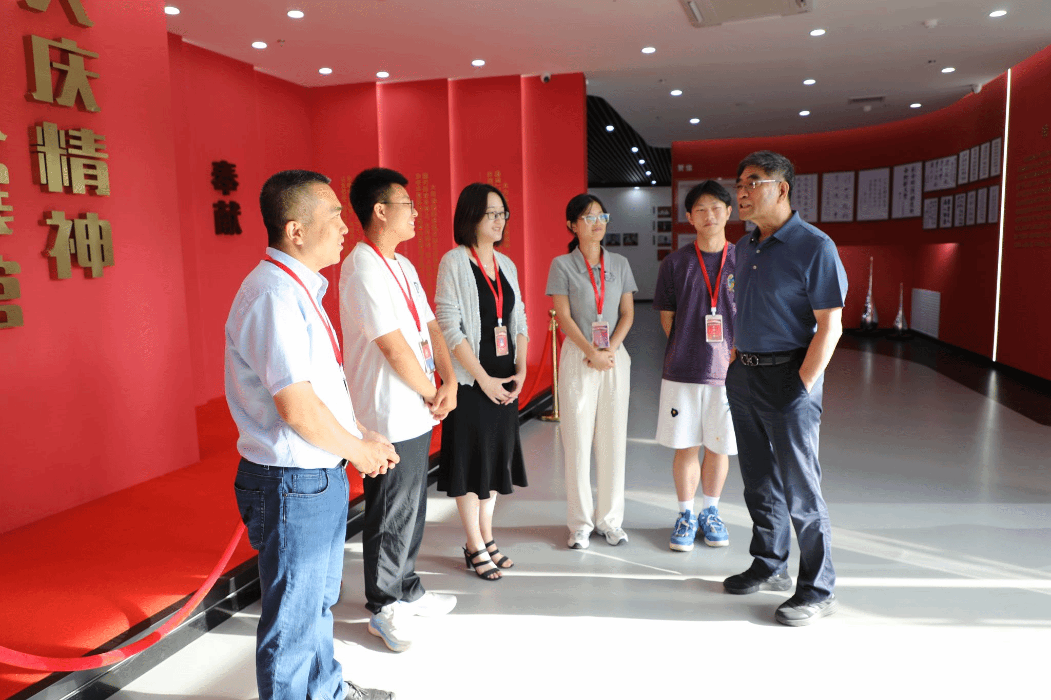 会后,地72级校友前往校史馆和大庆精神育人展馆参观,追忆青葱岁月,体悟大庆精神,并在学校食堂体验就餐,与2025级大一新生交流合影,将老一辈东油人的信念传递给新生代。