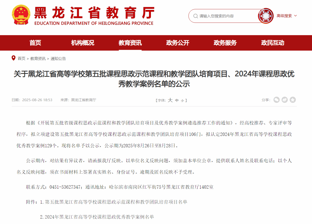 近日,黑龙江省教育厅正式公布了第五批高等学校课程思政示范课程和教学团队培育项目名单。万象城申报的《测井原理与解释》课程成功入选,荣获省级课程思政示范课程称号,相应教学团队同时获评省级课程思政示范教学团队。