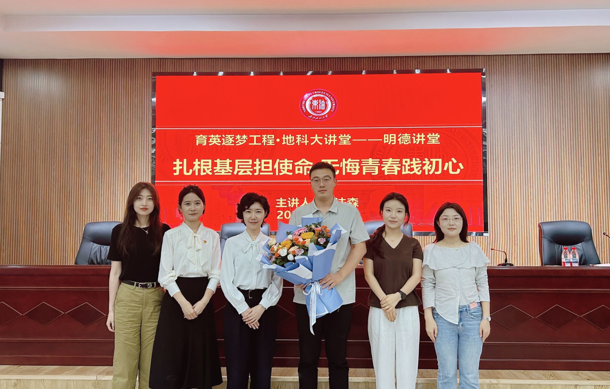 为激励学生树立远大理想、将个人发展融入国家需求,9月6日,学院特邀勘查技术与工程专业2017届优秀校友、全国基层就业卓越奖学金获得者梁法森作客地科大讲堂,为师生带来一场题为“扎根基层担使命 无悔青春践初心”的专题报告。学院党委书记韦丹宁、全体辅导员及学生代表参加了本次活动。讲座由2026届毕业班辅导员李海悦主持。