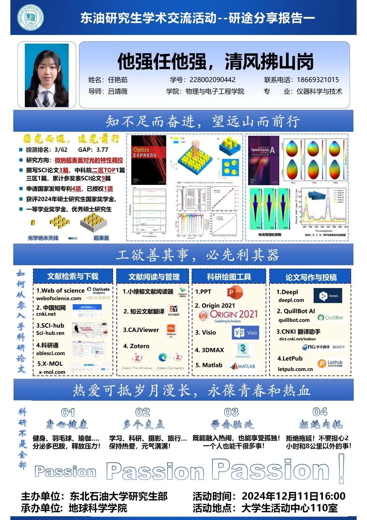 本次研途分享会将于12月11日(周三)15:50