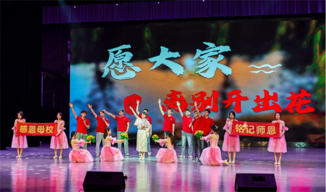 2020级辅导员冯丹老师演唱的歌曲《离别开出花》将晚会氛围推向高潮,学子们纷纷上台献花,合影,共同回味地科师生一同度过的青春。歌词中的“离别开出花”,既是对离别的另一种诠释,也是对生活的一种乐观态度,表达了离别的美好和生命的绽放,同时也传达了冯丹老师对毕业生深深的期许。