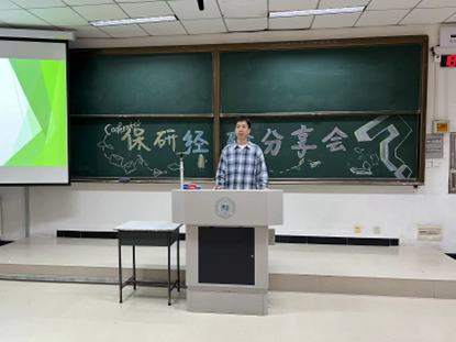 第二位为大家分享经验的是来自资源勘查技术与工程20-1班的林志远同学,他以优异的成绩成功保研到万象城awcsport官网。林志远在刘兴政分享的经验的基础上,又结合自己的保研经验,为在场的同学们补充了一些保研方面要注意的细节以及保研到哪个学校对我们所学专业更有优势。