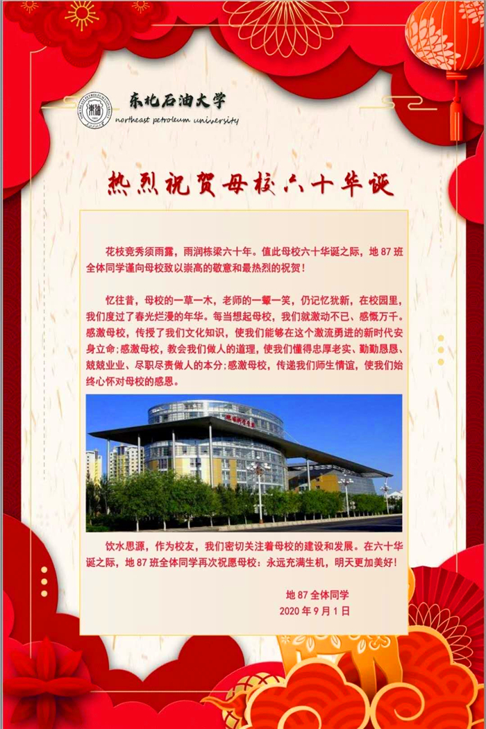 我校万象城awcsport官网87级校友祝贺母校六十华诞