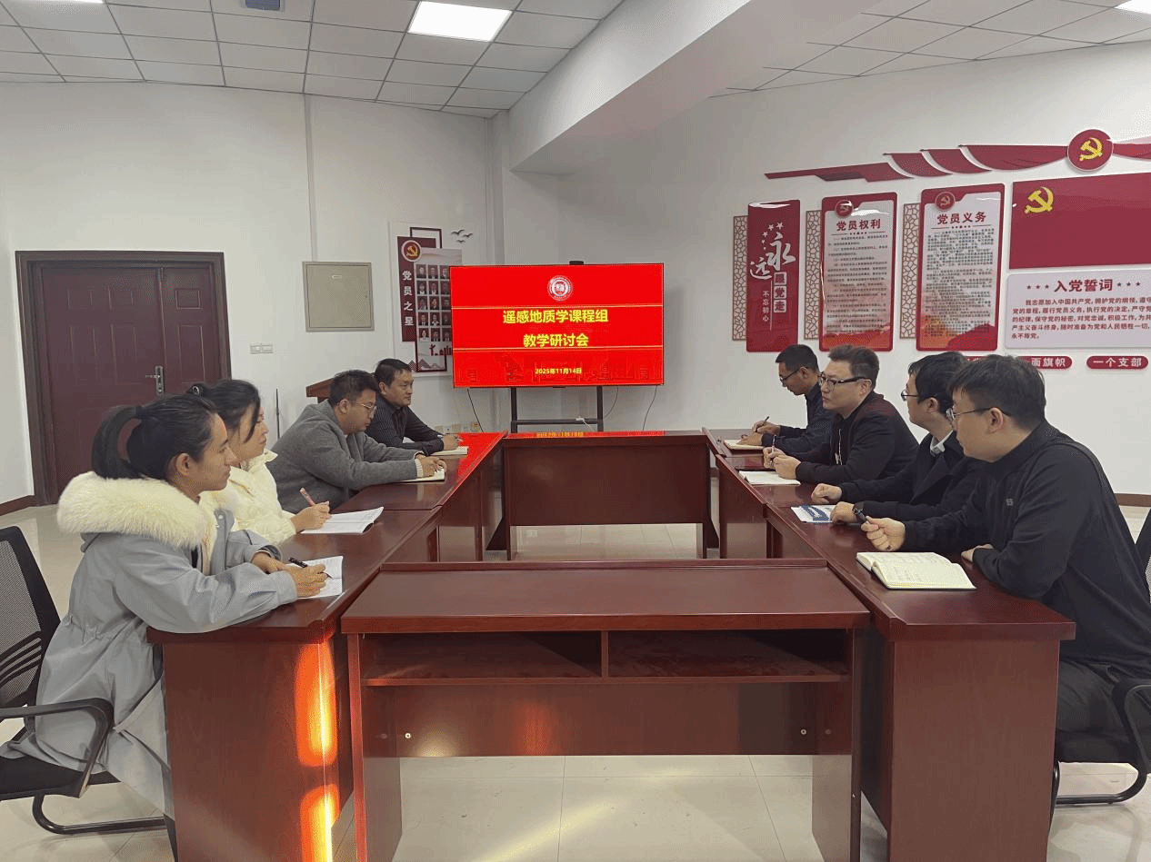 2025年11月14日,《遥感地质学》课程教学团队在地科院610开展了教学研讨活动。会议由张博为主持,课程组全体教师杜先利、魏华彬、王浩然、李晶晶、王博洋、贾茹、王超参加了此次会议。